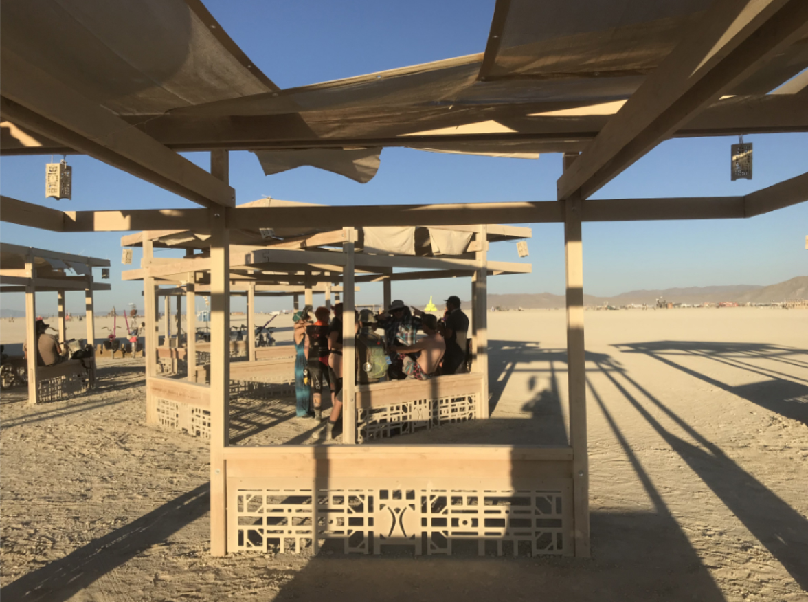 2019 Burning Man – I entered a design contest asking for proposals for built structures acting as pavilion to the man base in the center of the event. Out of hundreds of entries, I was awarded one of three grants to make my vision come to life. The Design concept came from some of the most valuable things one can find at Burning Man: Shade and a place to sit down. The pavilions are meant to create a space of shelter, almost more spiritually than physically. A place to rest from which one can survey their surroundings in a quiet moment of awe and satisfaction. Special shout out to Brian Agee at arborvintage.com for doing so much of the work.